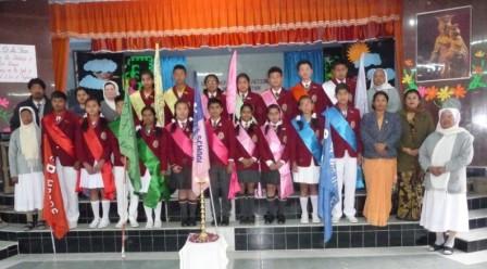 St Mary’s Convent School, Geyzing organized the investiture ceremony for the year 2014-15. The morning assembly on 1st March 2014 was indeed special as it witnessed the oath-taking ceremony by school’s senior and junior prefectrial board. The function started with a prayer song and lighting of the lamp by Sr. Superior Sr. Nirmala Tigga, followed by Scripture reading from the Holy Bible. The occasion was graced by our Sr. Superior, who congratulated the badge holders and encouraged them to shoulder their duties with ‘loyalty, truth and honour’. The Principal, Sr. Lily D’Suoza inspired the students and encouraged them to excel in their future endeavors. It was a defining moment for newly elected Head boy Aayush Chettri and the Head girl Sumnima Rai to receive the School Flag and Badge from Superior. Other posts such as Sports Captain, Cultural Captain, Language Captain, Discipline Captain, House Captains and Class Captains were also announced by Mrs Bhawana Tamang, the Co-ordinator of the school.