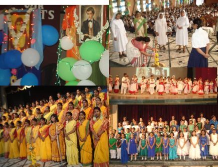Celebrations are part and partial of our academic calendar. And month of May brings varieties of celebrations; St. Domenic Savio, St. Mary Mazzarello, Rabindra Jayanti. Auxilium Convent School Barasat celebrated all these feasts with much vigor and enthusiasm. The feast was anticipated on 9th May 2014. Both primary and high school celebrations were meaningful and colourful. High school stated with lighting the lamp and invoking God’s blessings upon the gathering and offering garlands to the portraits of St. Domenic Savio, St. Mary Mazzarello and Rabindra Nath Tagore. The houses blue and green whose patron saints were commemorated with power point presentations on their lives, songs, skits and to add more colour to the celebration the thrilling dances were performed on the stage. Music club was in-charge for Rabindranath Jayanti and through short video clip, poetry and songs were presented to make the day a memorable one.