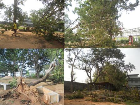 On 8th June 2014, is an unforgettable day for ‘Vicuna Nivas, Jumaikela and the surrounding areas.   At 2.00 p. m unexpectedly cyclone attacked this area. It was short but the disaster was great. It turned and twisted the trees and its branches and uprooted huge trees in the playground and in the garden. Play ground was looking like a battle field. In the neighbourhood walls were thrown down and the houses were blown off. There was heavy rain fall accompanied by hail stones, lightening and thundering. The situation was very frightening.  Student’s cycle shed also destroyed as the branches fell on it. The rain lasted till 4 p.m.  The disaster of our garden was greater. All the fruit trees and the fruits were ruined. Mangoes were full under the tree, most of the banana trees were broken with its tender fruits, huge mulberry tree was uprooted and the Jamun trees laden with unripe fruits branches were down to the ground. The Primary student’s midday meal kitchen was down on the ground. Situation was heart breaking. First time such a disaster happened in this area.  Seeing all these two boarders Sashikanta and Niketa Xalxo exclaimed in the words of Job; “The Lord has given and the Lord has taken away. Let us praise the name of the Lord”. We thank the Almighty for protecting our lives and saving us from greater disasters.