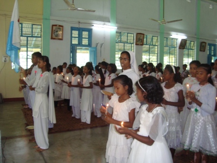 On 28th September 2014 was the memorable day for the Crus Veer children of New Chumta parish. There were prepared by Sr. Nilam Kindo, in charge of Crus Veer in the parish. The celebration began with the Holy Eucharist presided over by Rev. Fr. Michael Toppo, the Parish priest of New Chumta Parish. The Crus Veer children entered the Church in procession with the lighted candle which symbolizes ‘Christ the light’. 28 children received the medal of Our Lady as a sign of enrolment. During the homily Fr. Michael encouraged the children to serve the people who are in need as their motto invites them to save souls and expand the Kingdom of God. After the homily 43 children received the Cross as the members of the Crus Veer and took the pledge. After the Mass the felicitation and games followed. 71 Crus Veer children from 10 villages participated in the day’s programme with enthusiasm and joy. Winners were awarded prizes. Delicious lunch was served for all.