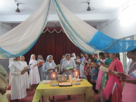 Auxilium Aspirantate celebrated the Easter Triduum (April 2-4, 2015) with fervor. On Holy Thursday morning recalling the Passover meal of Jesus with his 12 apostles, the community (consisting of 13 members) gathered together in the specially prepared upper room for the washing of the feet and the last supper. Before commemorating the last supper of the Lord, the members of the community washed the feet of each other with the same attitude of Jesus, the Servant. The entire service was a moment of deep intimacy with Jesus who loves us so much and teaches us to love each other in Him.