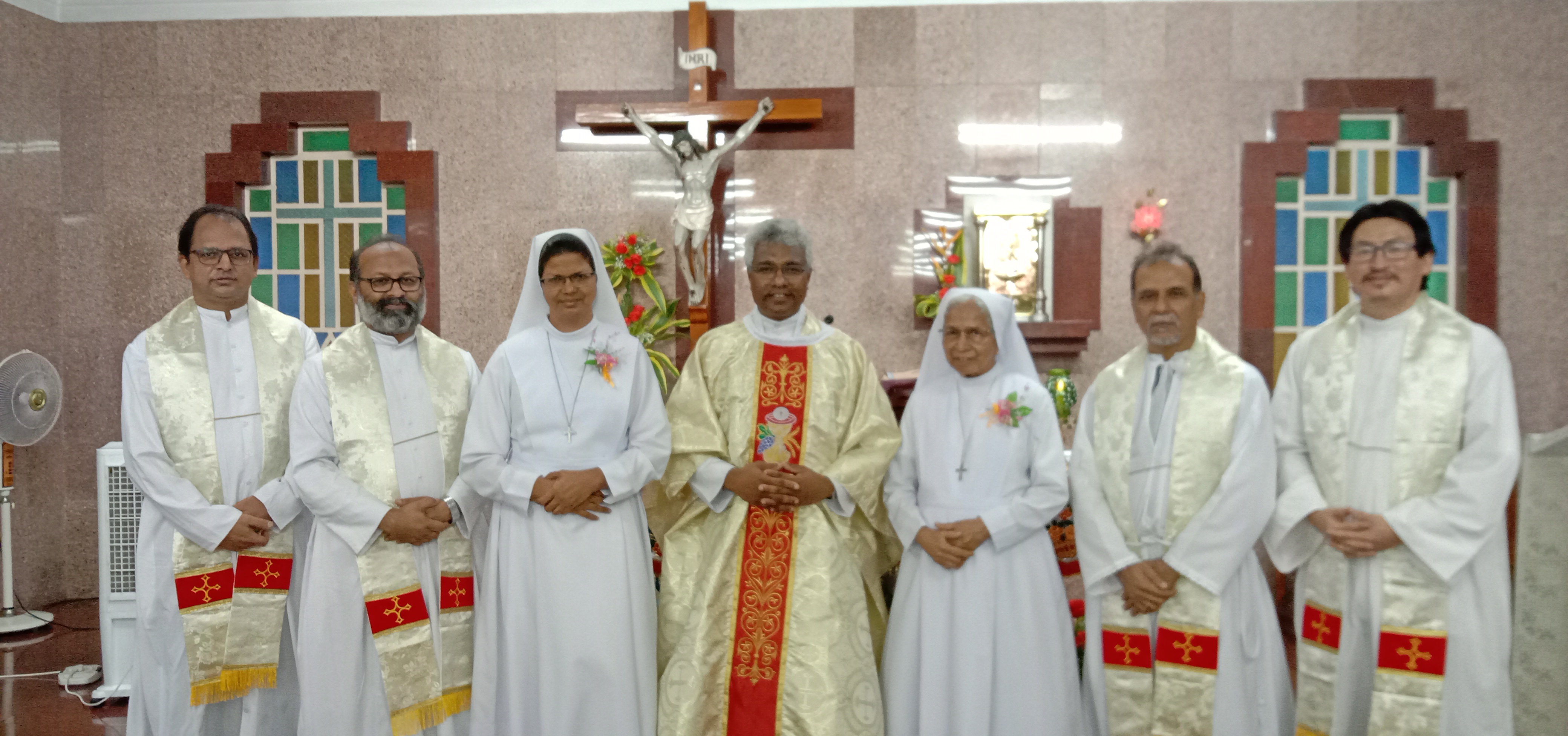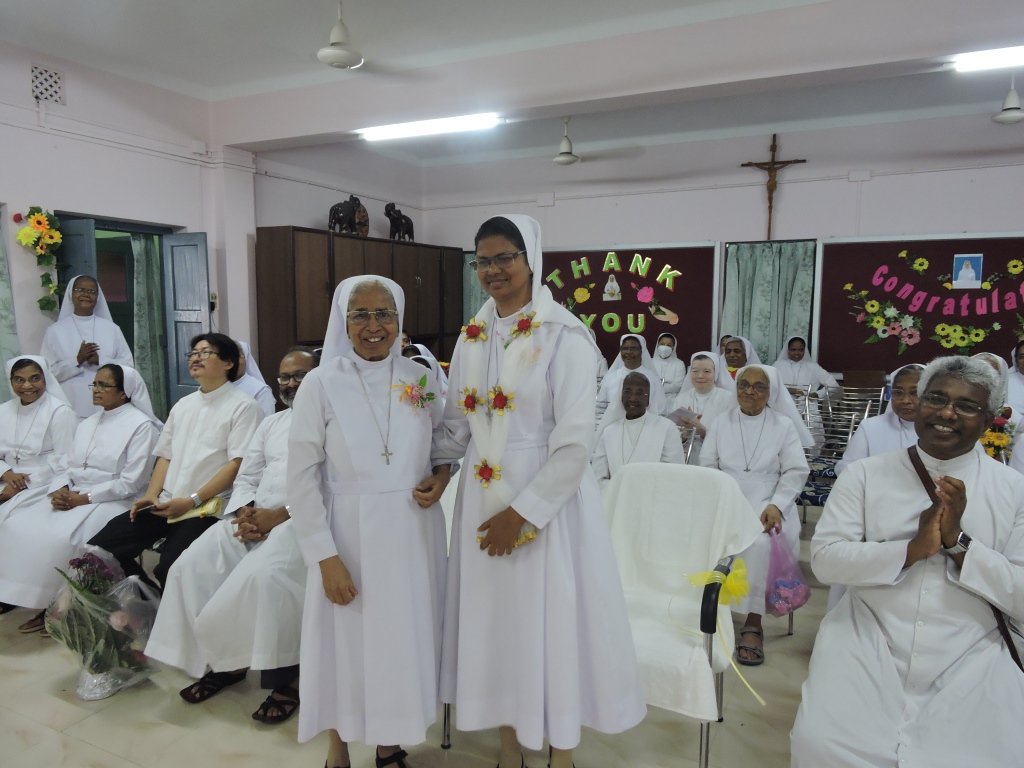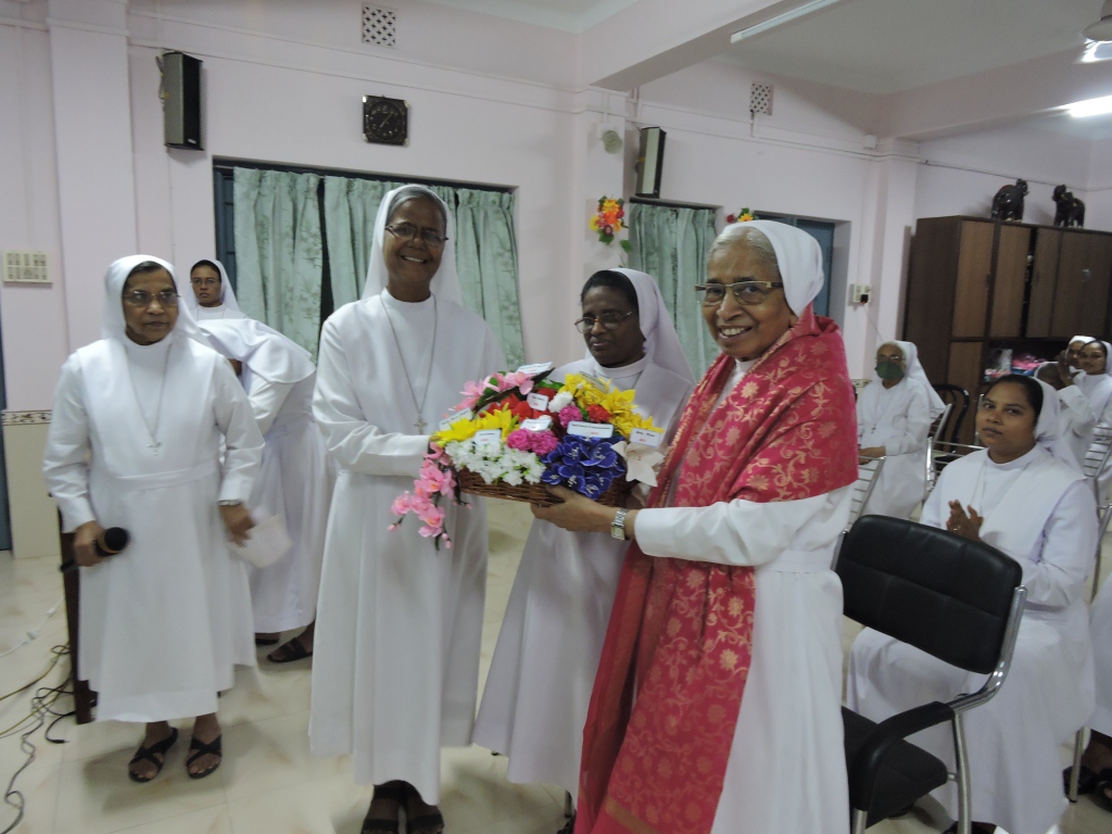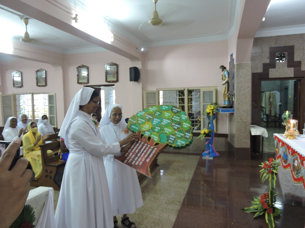 24th June 2021 was a memorable day in the annals of FMA INC Kolkata when the 7th provincial Sr. Leelamma Palliparambil was given the realm of the province. The day began with Morning Prayer prepared by Sr. Regina Adampakallel seeking blessing on Sr. Leelamma delineating the charism of a leader after the Good Shepherd. The Holy Eucharist presided by Fr. Joseph Pauria Sdb the provincial and four concelebrants commenced with an entrance dance by the aspirants followed by the handing over ceremony comprised of thanksgiving to Sr. Rose Ezarath, reading of decree of appointment of Sr. Leelamma as the 7th provincial of INC Kolkata, handing over the symbolic tree representation of INC Kolkata and seeking the blessings on Sr. Leelamma anchored by Sr. Stella. The Celebrant in his homily drew our attention to the two Mornesian symbols inviting each of us to be infiltrated with the spirit of the origins. After the Mass there was a short felicitation ceremony in the provincial hall followed by Breakfast.