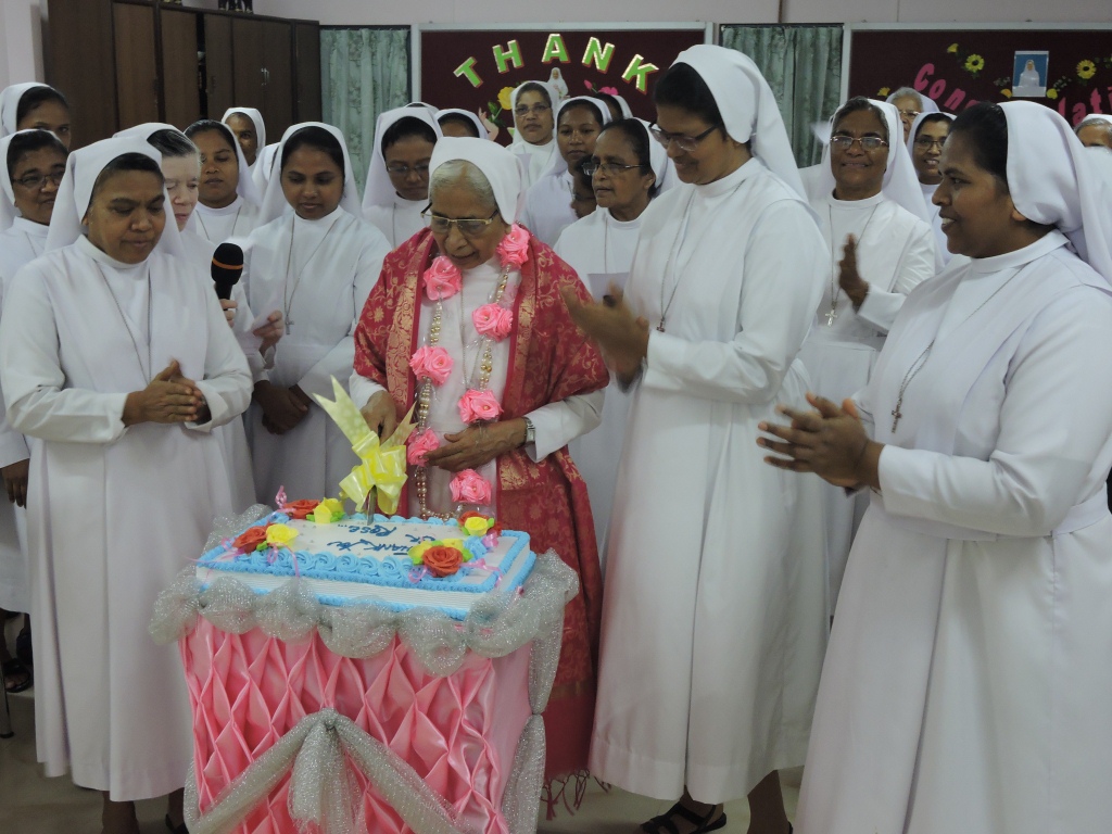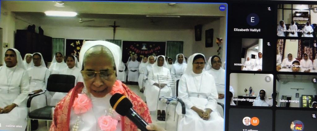 FMA INC Kolkata had the same biblical experience on 23rd and 24th of June. At the close of the six-year term the province felt indebted to thank the outgoing provincial Sr. Rose Ezarath with an evening get together both offline and online due to the pandemic situation. The service consisted of thanksgiving prayer service prepared by the media coordinator Sr. Celine Alexander was sent to all the communities to be live streamed at 5p.m. This was followed by expressions of thanks by the communities compiled by Sr. Clara Saminathan and the Google meet coordinated by the General Coordinator Sr. Lily Perumpettikunnel during which the vice provincial Sr. Teresa Adampakallel appreciated Sr. Rose Ezarath for her endearing service marked by dynamism, love and caring for sisters of varied ages, and strengthening of prayer life. As an expression of gratitude the province offered a spiritual bouquet of prayers and sacrifices in thousands, represented in basket of flowers. The cutting of the cake and thanksgiving song witnessed by all the communities online sent vibes of gratitude from all 25 communities to dear Sr. Rose. The communities in attendance offered gifts, bouquets, cards and gifts to Sr. Rose expressing their heartfelt gratitude. The zenith of the day’s ceremony was the sumptuous dinner prepared by the community of Dum Dum and enjoyed by all, escalated the family spirit.