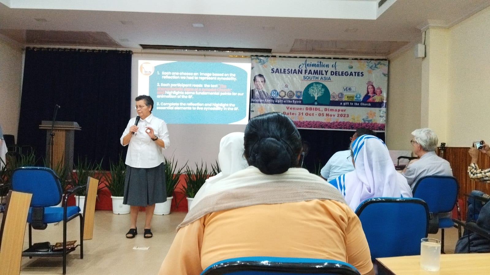 At 9 a.m. session was conducted by Sr. Leslie Santigo FMA the General Councilor for the Salesian family on the topic of Animation and accompaniment of the Salesian family. She and Sr. Lucrecia Uribe used two modern techniques called Escape room and Museum walk to make their session captivating and enriching. The topics for discussion were the prophecy of being a charismatic Family in the Church, the Prophecy of being communion in synodality, Prophecy of being a shared mission.