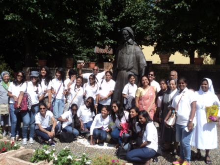 It was a unique occasion that the Province of FMA Kolkata, planned to organize the over sea Educational Tour for higher secondary students and teachers. From Auxilium School Dum Dum 5 Students, 3 past pupils and Sr. Esther the Principal of Auxilium School Dum Dum and 4 teachers and 9 students from Auxilium School – New Delhi were the privileged ones. We started our 10 days tour to Italy via New Delhi and reached Rome on 9th Aug 2015. This entire unimaginable journey was undertaken in order to participate in the CELEBRATION OF BI-CENTENARY OF OUR FATHER AND FRIEND OF THE YOUNG, DON BOSCO’S Birth day on 16th August 2015 at Turin.