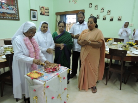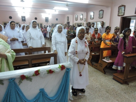 The day’s prayer was completely dedicated to the jubilarians. At Morning Prayer the outstanding and exceptional qualities of the sisters were highlighted in which each jubilarian was asked to place a monument with the year of the profession on it to place at the feet of Mary Help of Christians. Sr.Leelamma Palliparambil the Provincial brought to the limelight the various activities carried out by the jubilarians among the young thus imprinting in the young minds the lives of our founders and above all living an exemplary life as a true religious.