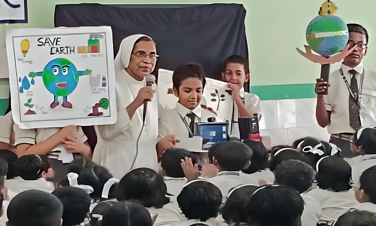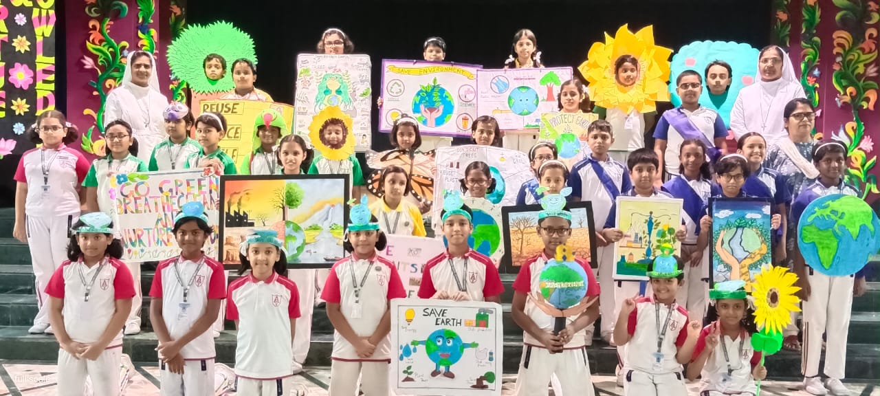 AUXILIUM- BARASAT: The Primary students of Auxilium Convent School, Barasat celebrated World Environment Day to create awareness. Also, to take action for the protection of the environment. The 2024 edition of Environment Day focused on land restoration. Students tried to encourage their fellow mates through a short programme which primarily focused on planting trees and restoring the beauty of this earth by creating a plastic-free environment. The students conveyed their message through various creative works on waste materials and the importance of saving electricity and water. Students also prepared charts and placards to help everyone understand the importance of protecting the environment.