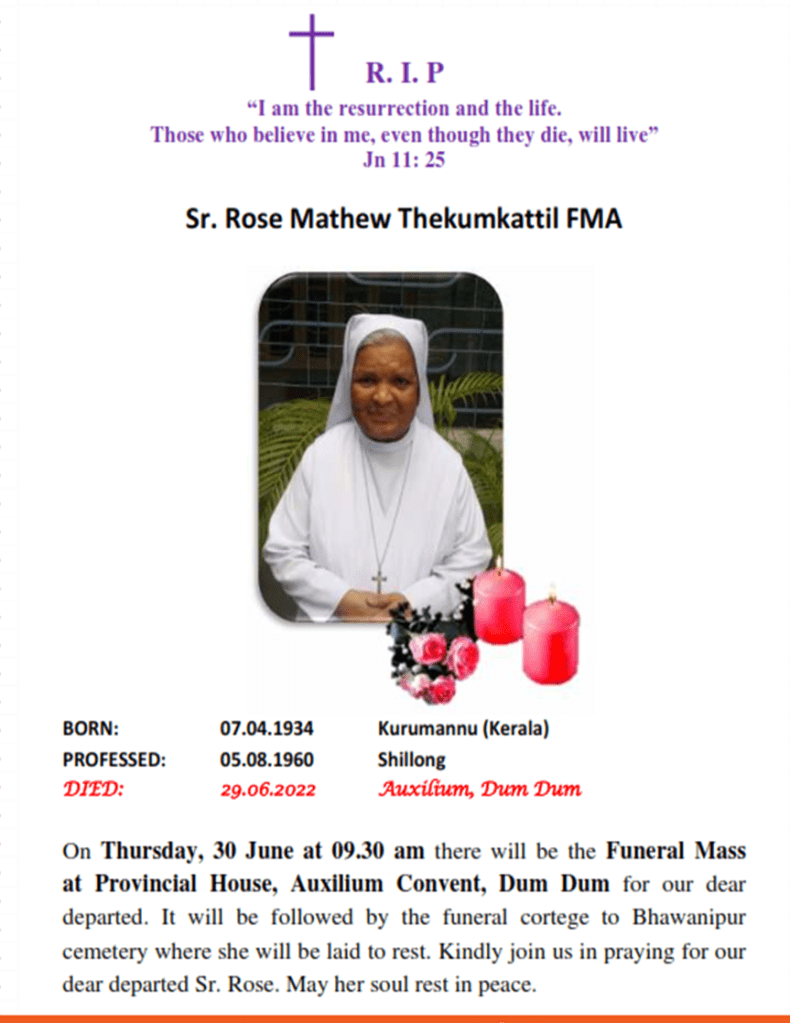 Sr. Rose Mathew: Rest in peace