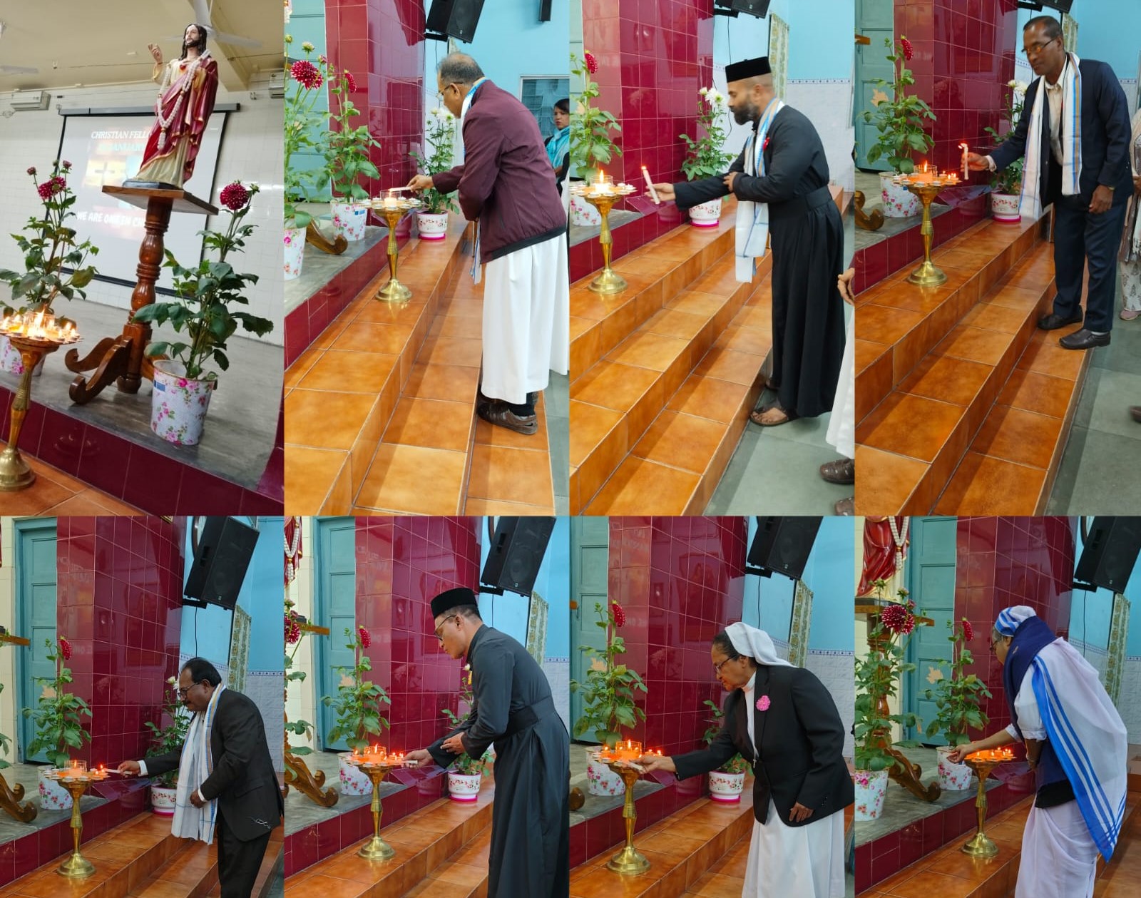 Soon after the welcoming ceremony, the gathering invoked God’s presence through the lighting of the lamp. Sr. Stella, Fr. Irudaya Raj, the five pastors, and their representatives were invited to light the lamp together, the symbol of the shared light of Christ among the diverse Christian communities present. The Auxilium staff further enriched the atmosphere by welcoming the gathering with a melodious song.