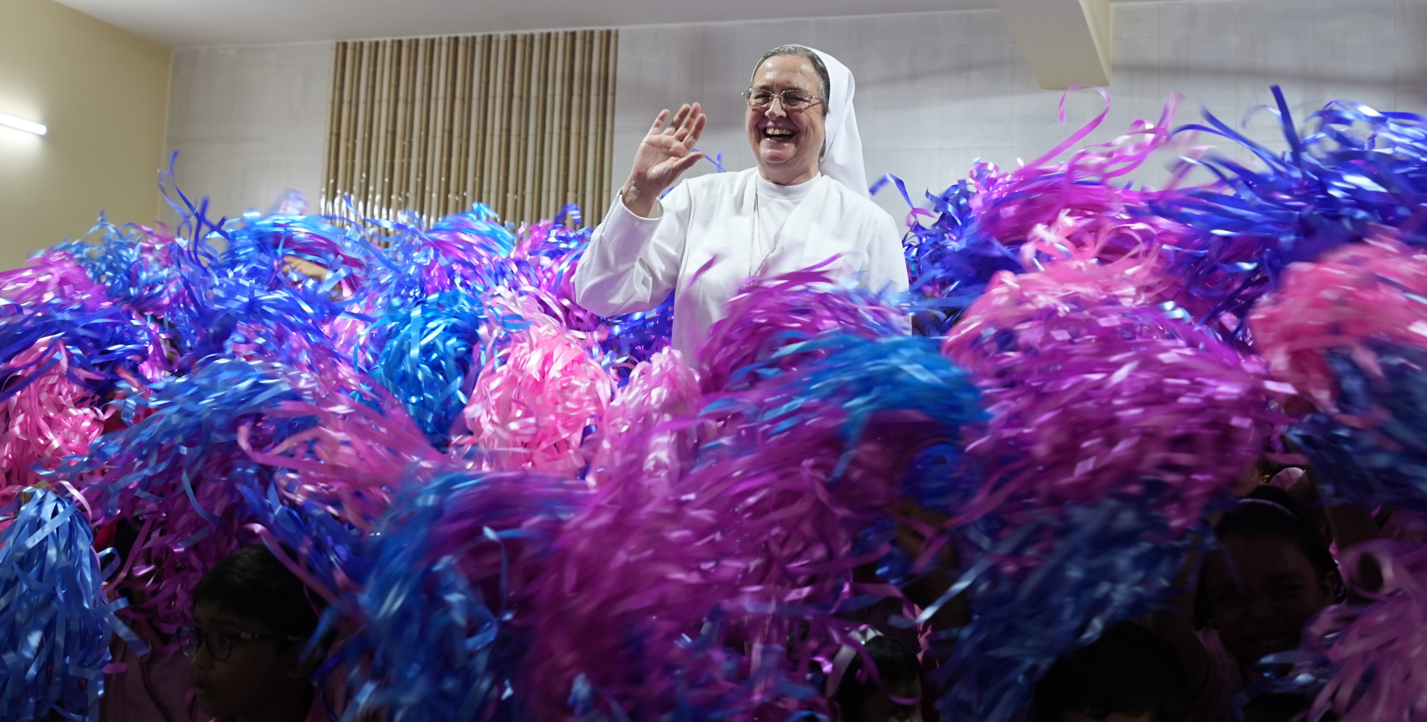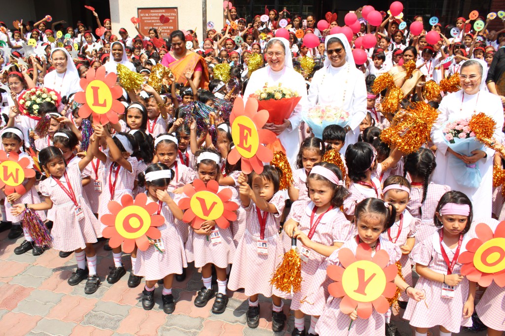 The audience was enthralled by the amalgamation of rich cultures that was brought about and amplified by the divine presence of Mother General, spreading the light of holiness and purity. Mother General’s words of wisdom filled everyone’s heart with motivation to carry forward the legacy. The words of Sr Runita Borja “Alone you go fast, together we go far” pierced in the bosom of every student and the day ended with a magnanimous rendezvous which shall remain a cherishable memory for everyone who was fortunate to be a part of this grand event. The tiny tots were at their best with pink and blue streamers welcoming La Madre and the General Councillors at pre-primary school, Barasat.