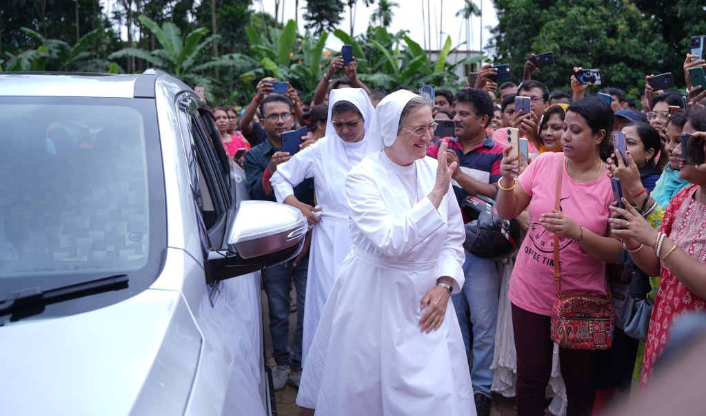 Mother Chiara Cazzuola, was given an apt welcome on her arrival at the airport of Kolkata by the sisters of the provincial house, accompanied by Provincial Sr. Leelamma and Sr. Salomi Minj from New Delhi. On her arrival at the Provincial House, Dum Dum she was offered a traditional welcome by the past pupils from the gate to the residence. The sisters from various communities of the province, the novices and the candidates were present to offer a glorious entry to the house with various traditional gestures, well explained by Sr. Stella Potteparambil the animator of the Provincial, House, Dum Dum and she was led to the chapel with a dance by the candidates. The sisters serenaded a chirpy welcome song in the refectory for our dear Mother.