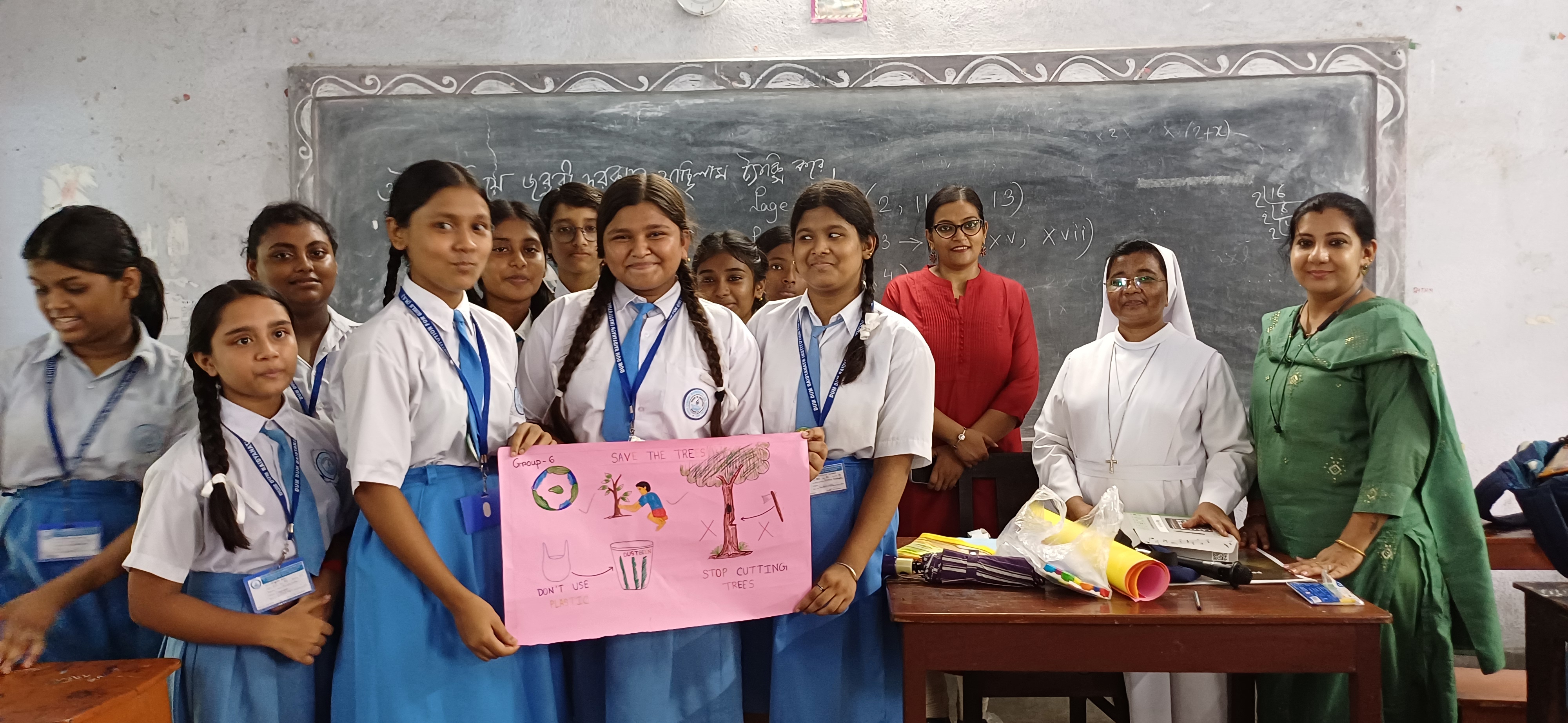 On 22 April 2025, the Earth Day celebration was observed with great enthusiasm and a sense of responsibility towards our planet at Auxilium Convent School, Bandel. The programme was held during the morning assembly in the school portico and was attended by the entire school community, including students and staff from the primary, middle, and high school sections. The event was graced by the esteemed presence of Superior, Sr. Rose Ezarath, and Principal, Sr. Clara Saminathan.