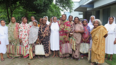 Pope Francis through his continuous teachings and his own personal example has propelled all to leave our cosy comfortable zones to venture out to the peripheries. The spark had lit in the hearts of the sisters of Barasat a flame and took the opportunity of the bicentenary to launch the first venture to reach out to the poor of the neighbourhood. Networking with the local leaders the sisters managed to identify about 20 old and infirm persons. On August 16 , 2015 they were invited to the feast and they were welcomed into the hall. Sr. Stella the animator in her inaugural speech spoke of Don Bosco and his mission among the young and the needy. The aspirants and the boarders entertained our guests with dances, skit and the dream at the age of nine. After the function the ladies were provided with a box of snacks, 2 kg of rice, dhal and eggs. This good work initiated today will continue every Saturday with the additional deserving people. The sisters were able to see a gleam of smile on their faces. May Don Bosco from heaven in whose memory we have started to work help us reach out to more in the periphery through other works of mercy and love.