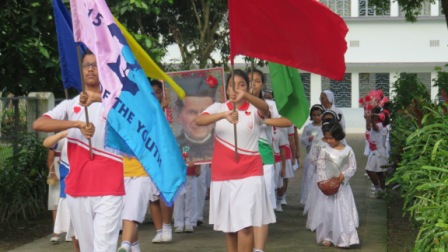 Finally to end the Prayer service a vibrant celebration dance was performed by the children holding colourful pompoms. They danced to the tune of “We are the children of Don Bosco”.
