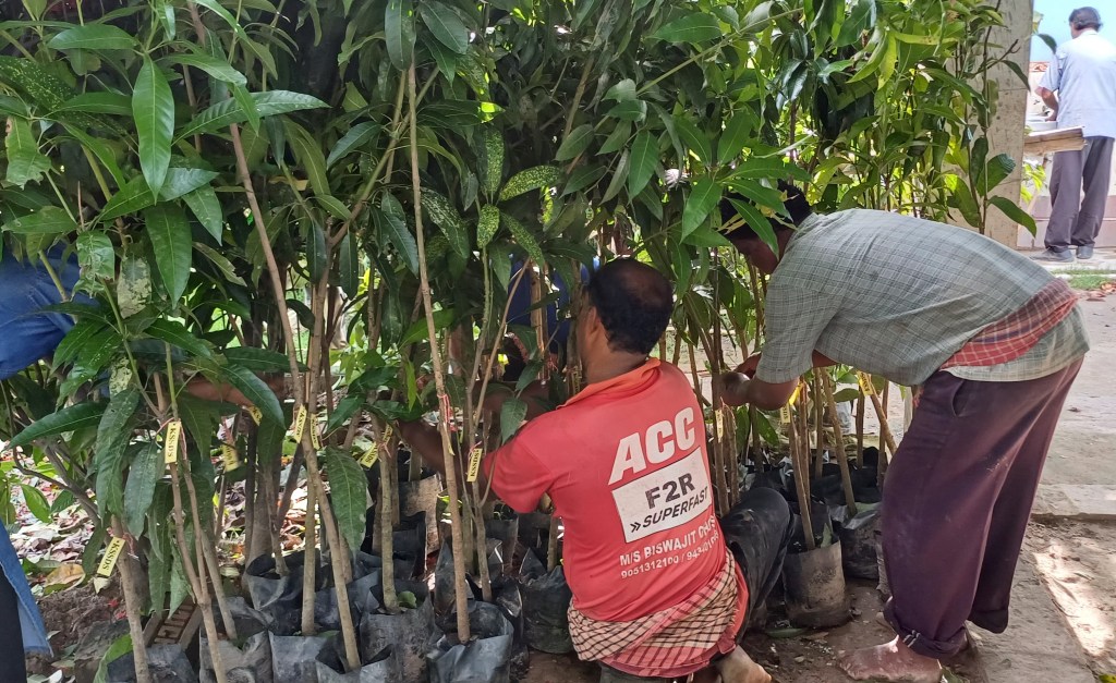 The families gathered at the Auxilium Barasat were given a variety of mango and litchi trees, explaining the initiative’s benefits of enhancing local biodiversity and providing a source of nutritious fruits and potential income. This planting drive was part of a larger effort to support sustainable development in the region. This initiative also responds to the cry of the earth by promoting environmental stewardship and supports an ecological economy by providing sustainable resources to the families, thus ensuring economic stability while caring for our common home.