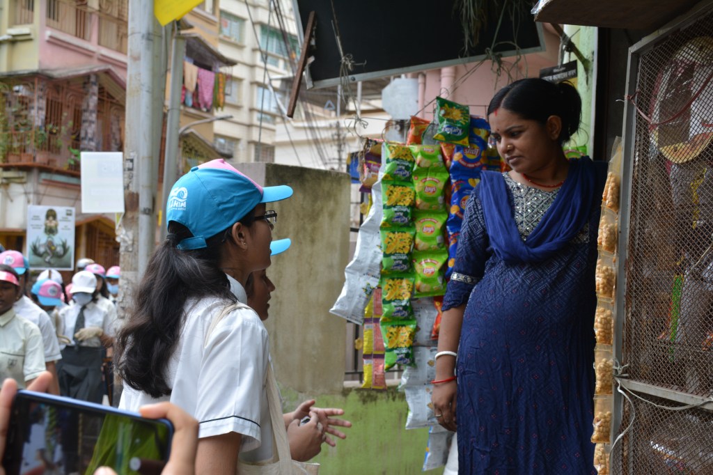 Group 4, passing the municipality hospital and the shops surrounding it, the students conveyed their ideas through various impactful slogans in Bengali and Hindi, which were made by the students. Some students had taken the responsibility to raise awareness among the shopkeepers about not using plastics, saving water and keeping our earth green and clean. Walking through the residential colonies and marketplace not only helped the students to spread awareness among the fellow residents and pedestrians, but also made them realize their goal, about keeping their localities clean and green.