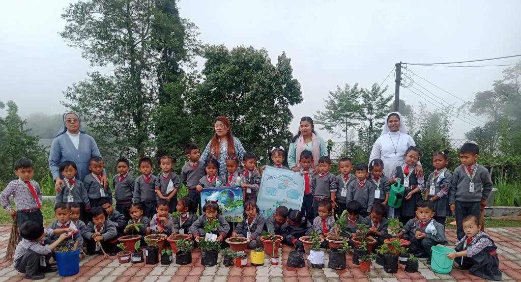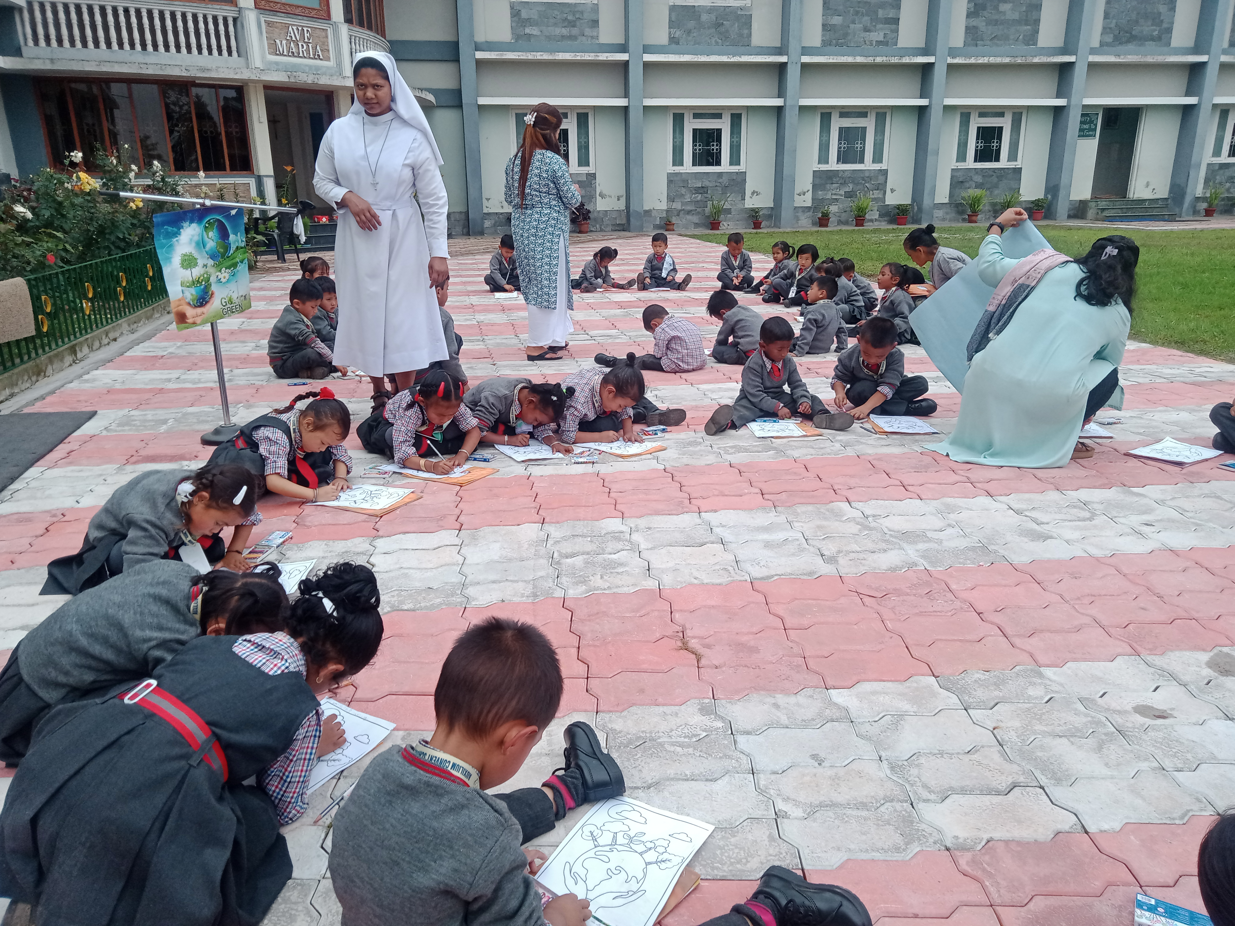 AUXILIUM MIRIK: Environment Day was celebrated at Auxilium Convent School, Mirik with great enthusiasm. There was a short prayer service conducted during the school assembly. After this Sr. Anjana Rai explained the meaning of the Environment Day celebration. It was then followed by the various activities. All the classes Nursery – UKG had brought the Saplings to plant. Three main activities organized were cleaning of the school campus, planting of the saplings and drawing competition on nature. The children were very excited and participated dynamically in all the activities and sisters and teachers helped and guided the tiny tots to accomplish it. Through this event, children got the opportunity to take care of and protect Mother Earth, the only place where life flourishes.