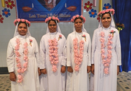 As the Institute celebrates the 150th Anniversary of its foundation; the Province of Kolkata rejoices and thanked God for the gift of our six sisters who made their first profession at Mazzarello Convent Ranchi, on 24 May 2022. The FMA India, commemorates, the centenary of the arrival of the first missionaries in India in 2022. In the year 1922, the six missionaries arrived in India, and it is a coincidence that six sisters Sr. Alice Rosline Tirkey, Sr. Elina Minj, Sr. Neha Beck, Sr. Neha Lucy Kujur, Sr. Nayna Agatha Kujur and Sr. Ursula Kujur made their first profession in Mazzarello Convent, Sahera Ranchi with their motto: Chosen to love, serve and generate life. The Holy Eucharist was presided over by Most Rev. Felix Toppo, SJ, the Archbishop of Ranchi along with other con-celebrants. During his homily he highlighted Jesus as an obedient Son of the Father who gave himself for the humanity. He offered his body mind and soul to his father to fulfill his Father’s glory. Therefore, our only desire should be to sacrifice to God. He invited the newly professed sisters to be the glory of the Church. The presence of the parents and relatives of the professed sisters, the religious, friends and the past pupils and the class mate of the professed sisters added joy to the celebration. The Eucharistic celebration was followed by felicitation and a fraternal agape.