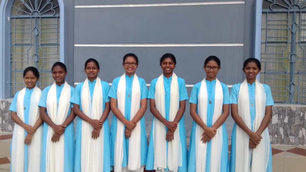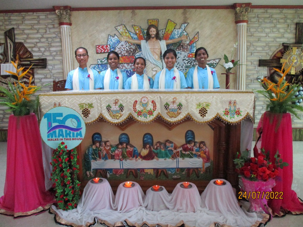 24 July 2022, was an auspicious day at Auxilium Aspirantate, Bamunmura, as the five young women officially began the journey to become Daughters of Mary Help of Christians, when the Institute is celebrating the 150th year of its foundation on 5th August 2022, and the centenary of the FMA presence in India. We thank God for the gift of these young courageous women who hail from the states of Jharkhand, Odisha, Meghalaya, and Rourkela. The simple celebration of the donning of the medal of Mary Help of Christians and Don Bosco is a symbol of belonging to the Institute.