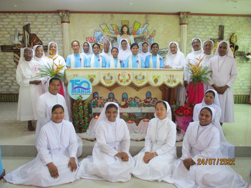 Provincial Sr. Leelamma Palliparambil exhorted them in the following words: “The God who has called you will be with you. Mother Mary who has chosen to be her daughter will lead and guide you. Be happy in your choice to give yourself totally for the Lord.” She offered them a statue of Mother Mary inviting them to resemble Mother Mary at all times. The presence of sisters from the neighboring communities of Kolkata added joy to the celebration. The felicitation by the Aspirants gave them the courage to embark on the journey of formation with the words “I have called you by name you are mine.”