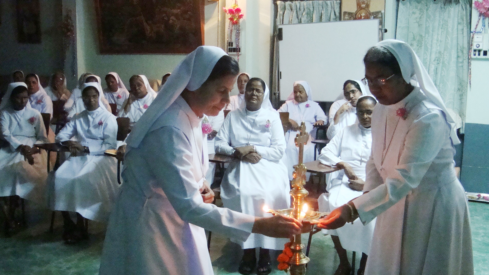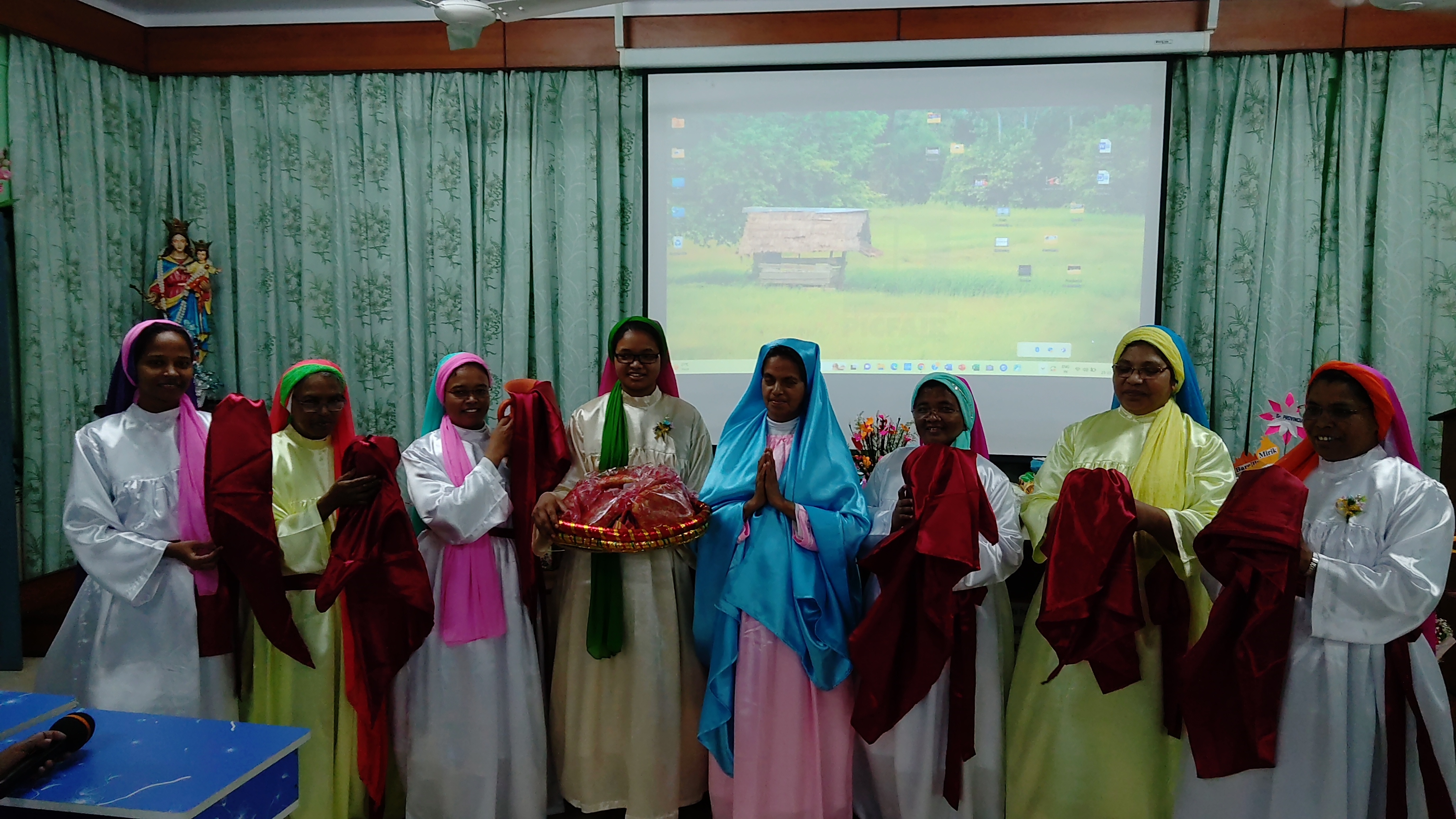 Finally, the climax of the celebration brought us together in the Provincial house hall to share the festal greetings with each other and more especially to celebrate God’s gift to the province in the person of our provincial Sr. Leelamma Palliparambil. During the short moment of prayer, all the sisters invoked God’s bountiful blessings and graces upon Sr. Leelamma, with the word of God taken from, the book of Numbers:6:24-26. The words of appreciation and acknowledgement were delivered by Sr. Rose Kureekattu, the vice provincial to Sr. Leelamma for her wonderful leadership and guidance. The programme continued sharing of the spiritual practices in a creative manner by different communities, which was followed by the presentation of the gifts to the provincial. Toward the end of the program, Sr. Leelamma exhorted words of appreciation and encouraged the assembly.