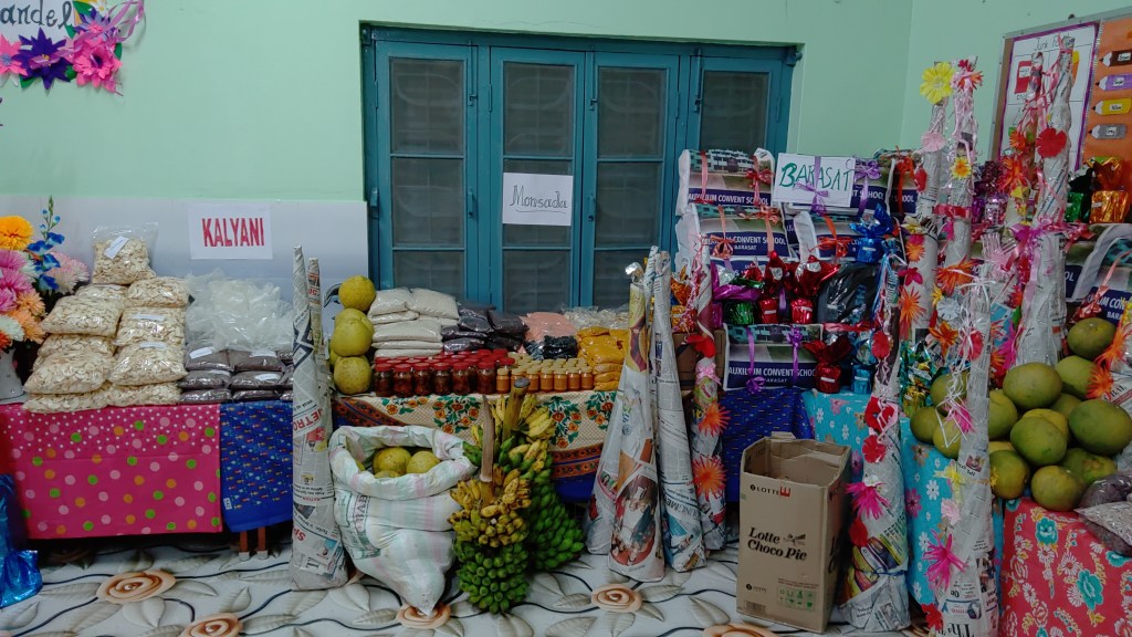 The most important moment of the day was the Holy Eucharist, officiated by Fr. Thomas Pathiyamoola SDB. The entrance procession was led with a graceful dance by the pre-aspirants from Auxilium Barasat. The melodious singing of the sisters elevated the minds of everyone to take part in the Holy Mass. After the Eucharistic celebration, everyone was invited to the hall for the inauguration of ‘prodoti casa’. The hard labour and the love of each community were highly appreciated by Sr. Provincial. It was followed by a short felicitation and a sumptuous meal prepared by various communities.