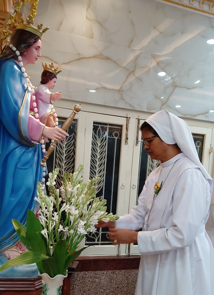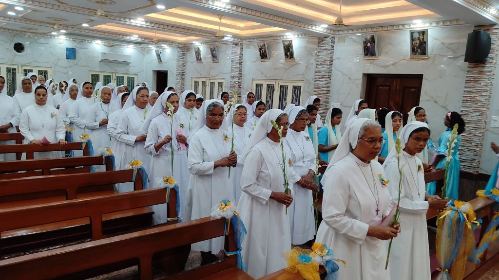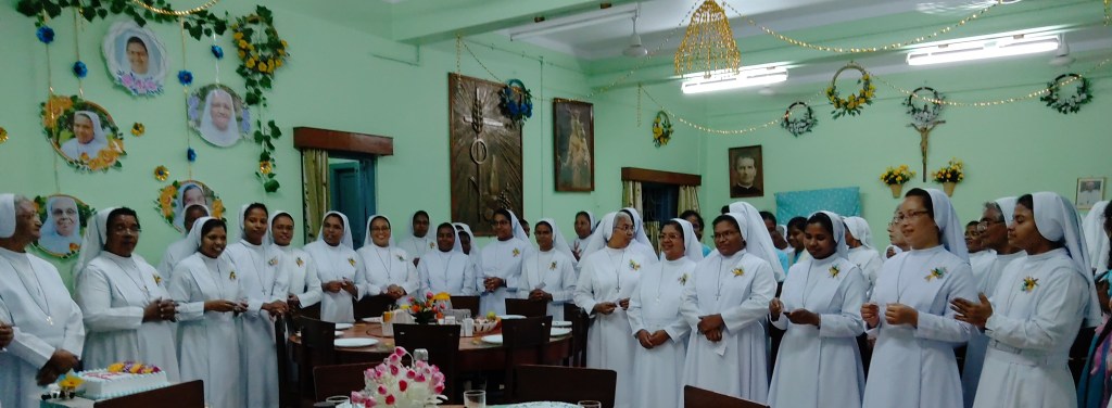 The provincial community day was celebrated with all its joy and happiness on 23rd October 2023 at Auxilium, Provincial House, Dum Dum. A month-long preparation was planned out with spiritual practices for this occasion. The theme for this event was “Inspired by Mary at Cana, be a transforming presence as yeast in the community and mission”. Along with the theme four weeks’ practices were meticulously chocked out for the same. Everyday prayer was offered for provincial Sr. Leelamma Palliparambil and for each community allotted for the day. Thus the preparation commenced with lots of love and prayer.