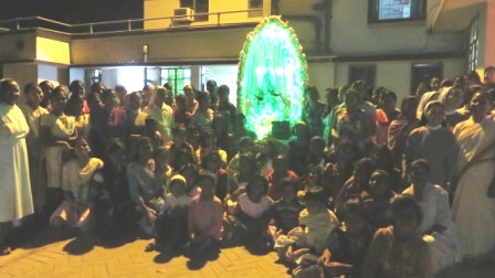 The month of the Holy Rosary had a spectacular beginning. You may ask, why? The creative mind and touch of our animator, Sr. Stella, lighted up the pedestals of our Blessed Mother Mary, in and outside the house, wherever her statue is found; A crown of stars, an arch of colourful lights, a decoration with flowers and pots; all to adorn the Heavenly Queen. Yes, to begin the month of the Holy Rosary, Mary was made visible everywhere so that we can invoke her and greet her more often. All the sisters and the house girls were each given different Mysteries of the Rosary to pray personally so as to make a living chain which each one will offer completing each day as many Rosaries as possible. The daily Community Rosary is also animated by each sister and the girls, with special creativity and initiative. Thus, Mary will have a special place in our prayer moments during this special month. We pray for all the special needs of our Province, of our Institute and the world at large, in particular for the end of the pandemic COVID -19.